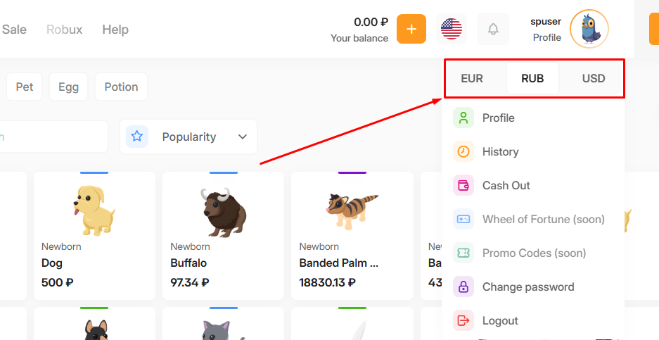 How to change the currency on the website?