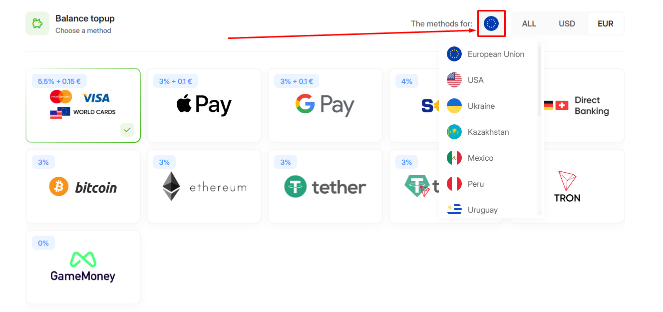 Which countries’ wallets/cards can I use to top up?